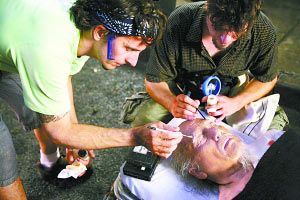 即将上映的《功夫之王》中成龙的80岁老年扮相日前曝光。片方透露,是好莱坞的逼真技艺成就成龙的老人造型。透过缕缕白发和丝丝皱纹,电影中的成龙老态毕现,足以以假乱真。每天扮相几个小时,让成龙吃足了苦头。