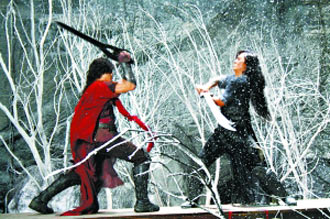 发布会当天拍摄的是聂风和步惊云的最后一场雪中决斗戏,这也是全片的一场重头戏。在拍摄时还发生了一点“意外”,郑伊健的剑不小心打到了郭富城的头上,现场工作人员非常紧张,郭富城安慰大家说没关系,没流血,结果拍摄结束,郭富城摘掉假发后才发现,被打到的地方竟然肿得老大,郭富城打趣道:“肿得像乒乓球,就当迎接奥运了。”