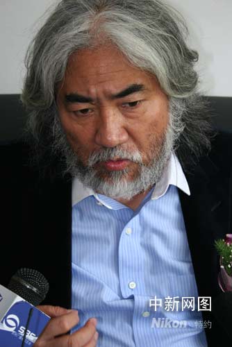 张纪中向媒体介绍电视剧《兵圣》、《西游记》的拍摄情况。