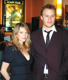 希斯莱杰(右)死后,盛传同居女友米歇尔威廉丝和他父母不和。