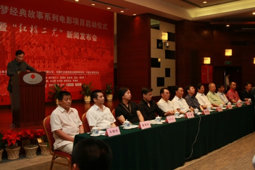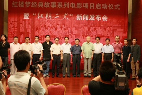 中新网6月29日电 由中国艺术研究院红楼梦研究所、中国红楼梦学会、万众盛世传媒投资(北京)有限公司联合主办的“红楼梦经典故事系列电影启动仪式暨《红楼二尤》新闻发布会”于6月29日在北京隆重举行。中国文联党组成员、书记处书记白庚胜,中国电影家协会分党组副书记、秘书长许柏林,中国艺术研究院副院长、中国红楼梦学会会长张庆善,北京大学艺术学院常务副院长彭吉象,著名红学家李希凡等众多知名人士和全国60余家新闻媒体参加了发布会。发布会上,红剧系列电影总制片人周代清介绍了红楼梦经典故事系列电影项目内容,并表示首部影片《红楼二尤》将于9月中上旬开机,预计2009年春节期间在各大影院与广大观众见面。