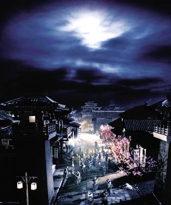 在昨日公布的剧照中,一部分是幽深静谧的江南庭院,街道、屋外缤纷的桃花,屋内则是庭院池塘,荷花盛开,也有宏伟的王宫楼台。另外一部分则是荒烟大漠,战争过后尸体堆积如山,而在大漠上居住的少数民族则有着异于中原的风土人情,他们的悬棺,他们的舞娘,都一一展现了出来。