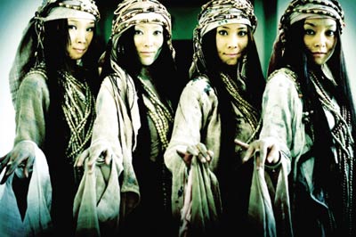 在拍摄大漠战争戏的时候,剧组动用了400多号人,在西部大漠里苦战了20天,视觉冲击效果非常震撼。而西部沙漠、沙匪的城堡和帐篷、异域风情的舞娘、造型独特的大漠沙匪,这些异域风情的场景和人物设置,也让人有联想,增添电影的魔幻感觉。