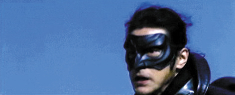 行动的时候,金城武大多戴着一个佐罗式的面具,只露出嘴巴和眼睛。但有的时候,他会戴上一个狰狞的人皮面具。预告片中他曾经有一次将面皮撕下———恶人立刻变成了帅哥!