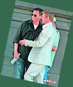 在国际影坛颇具知名度的王家卫,与皮特早已相识,去年二人更合作拍摄一日本电话广告,并由张叔平担任美指。互相欣赏的两人一直希望能在电影方面合作,可惜还没遇到合适剧本。前天陪伴女友茱莉出席活动的皮特,得悉女友新作《调包婴儿》和王家卫的《东邪西毒》首映礼,均安排在同日及同一家戏院举行,他便卖人情先带茱莉及《调包婴儿》导演伊斯特伍德,提早于晚上约7时到戏院为王家卫撑场,然后再于9时半出席茱莉的新作首映礼。