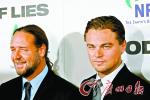 罗素·克劳(左)和莱昂纳多将进行针锋相对的演技决战。(记者 王振国)