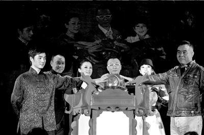 陈凯歌率领章子怡等主创向影迷鞠躬致谢。主创们一起点燃了写有“梅兰芳华”字样的宫灯,寓意影片票房更加红火。