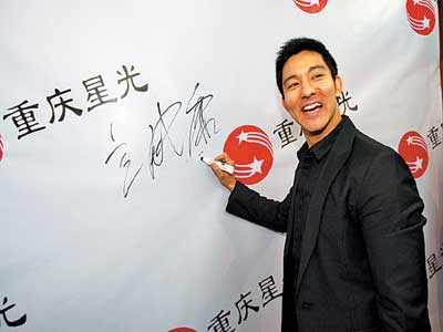 作为星光国际旗下艺人,昨天立威廉和爱戴还做客了刚刚成立的重庆星光机构并接受了记者采访。眼前的“万人迷”,黑西装、牛仔裤,脸庞比银幕上瘦了一圈,不过没有想象中那么高。