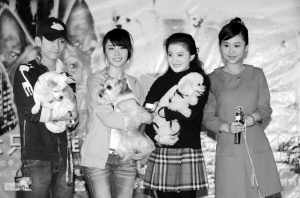 作为小动物保护协会的爱心形象大使,杨若兮昨日是专程从无锡拍戏片场赶回北京参加首映式,她配音的狗狗叫费昆,是一群狗朋友中的女军师,被誉为最“智慧的狗”。杨若兮说,自己家里的狗Lily和费昆一样聪明,她还在现场发令,让Lily握手、坐下等,小家伙果真很配合。