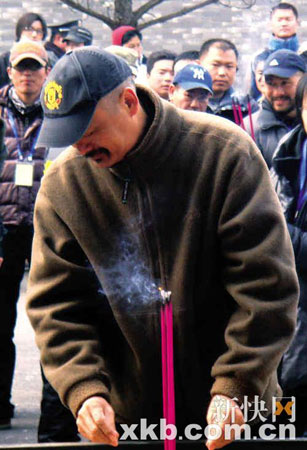 在《孔子》拍摄地外面的道路上,摆放了一排不同规格和等级的战车,可见在这部戏中,大场面,仪式性的戏不会少。带妆后的周润发让不熟悉的人一时还很难看出:花白成髻的头发、满脸的胡须、红润的脸色、灰蓝色的粗布长衫……发哥不时看看剧本,半疲惫半沧桑的神色很显“圣人范儿”,而身边的助理们也忙个不停,一会点烟一会送水,颇有众星捧月之感。