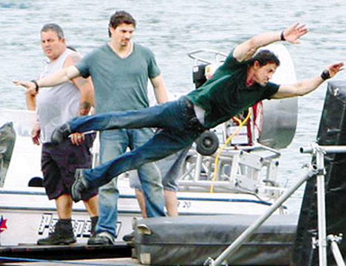 西尔维斯特·史泰龙自编自导自演的新作《敢死队》昨日曝光了片场照。现年62岁的史泰龙依旧以硬汉造型亮相,上演了一出狂追水上飞机的动作戏。坚持亲自上阵不用替身的他说:“我必须沿着码头去追赶那架水上飞机,然后跳进去,那种感觉就像被卡里特娜飓风吸了进去。” (王文)