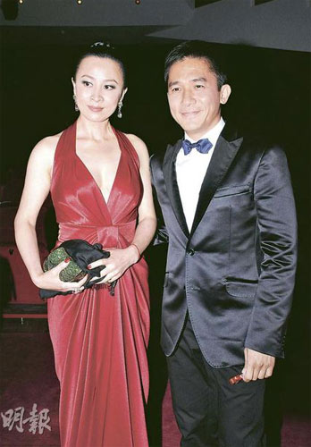 中新网4月20日电 据香港《明报》报道,屡传怀孕的刘嘉玲昨晚身穿火红色超低V束腰长裙,与丈夫梁朝伟结伴出席香港电影金像奖颁奖典礼,明艳照人,身材苗条的嘉玲不似怀孕。