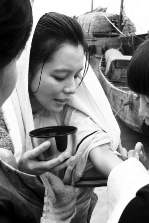 徐若瑄介绍,她扮演的黄苏英是个美丽善良,而又坚韧不拔的渔家女,看到孩子的同学不慎掉入水中,她当即跳海救人。拍摄当天,海边的天气十分寒冷,天空下着雨,海风很大,导演为她的身体状况担心不已。“我会游泳,但因为要和小演员配合,所以要在海水中一遍遍试戏,很耗体力,后来我的腿都在抽筋了。”尽管剧组提前准备了充足的保暖和安全措施,上岸后的徐若王宣仍冻得瑟瑟发抖,几尽虚脱状态,长时间无法缓解过来。○黄笑宇