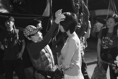 昨日拍摄的戏其实并没有太多复杂的内容,画面就是高圆圆和郑宇成在一条老巷子里面边走边说的画面,不过两人来来回回走了一晚上,拍摄了一个通宵。为了营造一种雨后的氛围,剧组人员用水管将整个小巷子浇得湿漉漉的,连墙体都要全部浇湿。住在巷子里的居民都成为了群众演员,该开店还开店,该打麻将还打麻将,只是不能在巷子里走动而已。因为两人全部用英语对白,所以每次拍戏前高圆圆都拼命地练英语,特别是她还要背草堂的英文解说词,难度很大。“说好英语可能不容易,说熟了总没问题吧?随便什么语言,说上1000次,总归熟练一点。”