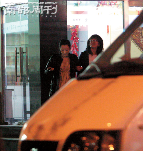 许晴与助理一同走出大厦,在助理的“搀扶”下,许晴颇有“少奶奶”的派头。