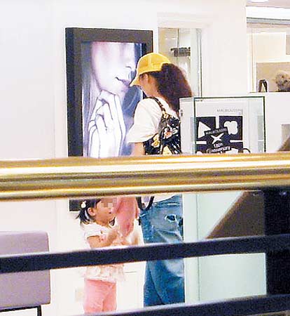 舒淇(右)与小女孩玩疯了,在店内玩起手拉手。