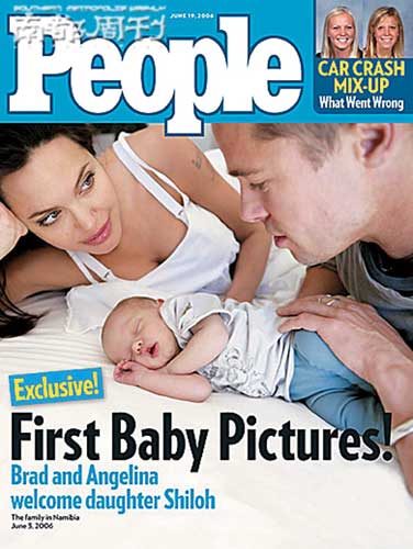 安吉丽娜·朱莉、布拉德·皮特深情凝望刚出生的小女儿希洛的照片高居榜首,这张《PEOPLE》2006年6月的封面照,售价为410万美元。