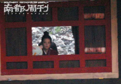 在剧组中午休息的时候,突然一位身着一件蓝色T恤、头发扎着紫色头巾的女孩快步走出了城门,记者仔细一看原来就是赵薇,赵薇笑容灿烂,看上去心情颇好,见阳光刺眼,她还抬起手做手搭凉棚状,接着就快步朝休息的地方走去。到下午拍摄的时候,记者看到赵薇出现在城墙上搭建的红色小房子里,透过房子的窗户,记者看到赵薇正在向外张望,她的表情稚气中带有一股飒爽之气,但手里拿着一把团扇。一会儿赵薇走出了城门准备拍戏,这时记者看见她裹着一身红装,腰系丝绦,手腕上扎着护腕,一派女将风范。当天赵薇的戏拍的是孙尚香飞马回城,然而赵薇并没有骑马,骑马的是她的替身。这个替身是位男士,他也是一身红装,披着件黄色的披风,动作潇洒,英姿勃发,由于拍摄的是背影,所以赵薇一直充当看客,并没有上马抖缰。如果以后在电影中看到孙尚香骑马的英武场面,这个英姿不仅仅属于赵薇,也属于她的替身。