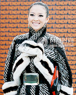 章子怡出席服装春夏秀 巨钻粗腰带亮相长城(图)(2)