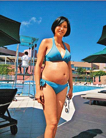 据报道,卢淑仪生产前效法不少外国女星般拍摄大肚泳衣照,她在7月27日的网志中,张贴自己在泳池边拍摄的三点式照片。“嗨,我的好友,来看看我的宝贝越来越大,好开心!”其后又在10月10日贴上另一帧大肚照,即将生产的她用尺量腰围,并指腹大便便的肚子说:“我的腰围43吋!”