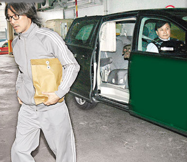 星爷到达拍摄现场后先行下车,但爱犬Chocolate却坚持坐在车厢内。