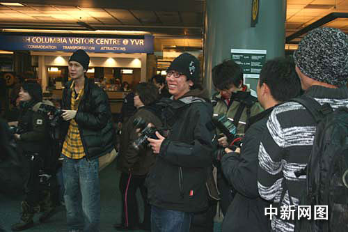 温哥华当地媒体和香港来的五十多位记者一早守候在机场抵达出口,但未能“接到”同机而来的沈殿霞女儿郑欣宜。中新社记者 吕振亚 摄
