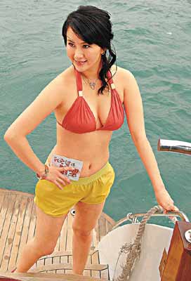 中新网4月25日电 王晶新片《我老婆系赌圣》的演员包括孟瑶、赵彤、梁敏仪、庄思敏及一众男演员,昨日乘坐游艇出海畅游,几位女演员穿上性感三点式玩游戏,让在场男士眼睛大吃冰淇淋。