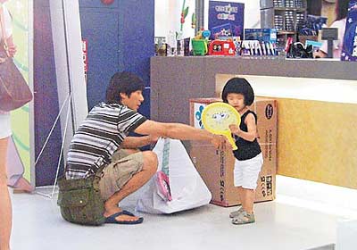 12日傍晚记者目击陶子一家人步出家门,李李仁体贴先帮她开车门,等她坐稳再让小荳荳上车,安顿好后车子开向信义区“纽约纽约”购物中心,他们先直冲玩具城,小荳荳兴奋到处找玩具,陶子出声制止,李李仁让女儿试骑一台价值近万元新台币的玩具车,夫妻俩二话不说直接埋单。