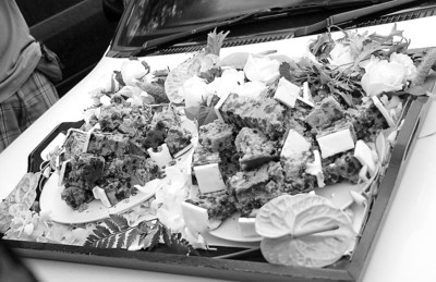 昨天,晨报记者和数家香港媒体同行在通往UmaParo酒店的道路上苦苦守候了一天,想尽了一切办法试图获得婚礼核心区的消息。最后,梁朝伟、刘嘉玲也被记者们的诚意所打动,特地准备了蛋糕给记者带下山来。不过,面对蛋糕和可乐,饥饿的记者们的第一选择却不是分而食之,而是迅速掏出相机一阵狂拍。