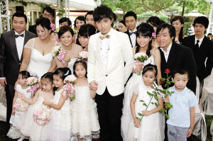 古巨基带领10对新人一起走过红毯时,也邀请了一位6岁的小女孩担任自己的女伴。被浪漫婚礼气氛打动的古巨基感慨地说:“一直很想结婚啊!很向往家的感觉,但可惜一直没有遇到另一半的缘分。”身边这位6岁的小女伴,私底下透露说很喜欢古巨基哥哥,但是当古巨基在大家面前向她“求婚”:“我等你12年,你嫁给我好吗?”小女孩却害羞地多次推开古巨基的麦克风,斩钉截铁地说:“不要!”令古巨基颇为尴尬。(记者柳治)