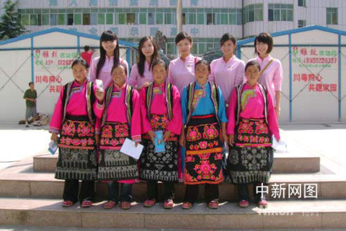 由2006年中华小姐冠军黄橙子、2007年中华小姐冠军曾光、2006年华姐选手王江蕾、2007年华姐选手王婕妤以及2007年华姐选手张诗佳组成的第一组华姐义工团队,先后走访了茂县、汶川县和理县的6个羌族乡寨,行程上千公里,而且此行食宿、交通等一切费用都由选手自己担负。