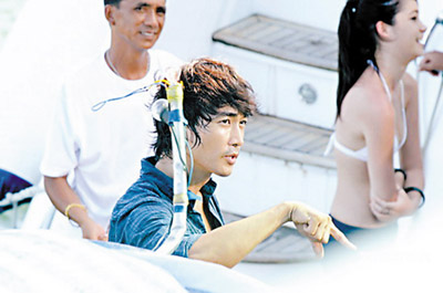 前天清晨,剧组共出动两艘游艇、两艘快艇以及两艘小艇出海拍摄,男主角宋承宪穿蓝色衬衫打扮邋遢,露出古铜色皮肤,李妍熙则以白色低胸露背装打扮清凉。宋承宪每拍完一场戏就返回码头挨在栏杆乘凉,与工作人员有说有笑。当记者上前访问,宋承宪礼貌地以“Sorry”示意拒绝访问。与李妍熙在艇上对稿,宋承宪不时照镜甚是爱美。剧组拍到天黑才收工,宋承宪在7时半离开,临走前与工作人员握手道别表示感谢。