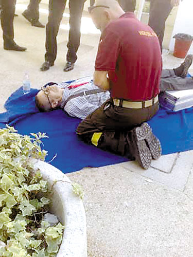 该记者病发晕倒后,威尼斯电影节的工作人员立即对他进行紧急抢救。因为被及时抬出影厅并得到了相应抢救措施,他最终平安获救。电影节相关工作人员透露,在并未对该记者做全面身体检查的情况下,他们初步猜测该记者是因观看北野武新片时,难以承受影片的惨状刺激而导致心脏病突发。排在《阿基里斯与龟》之后放映的贾樟柯短片《河上的爱情》因此延迟放映了半个多小时,在外等候的全球记者不明就里,议论纷纷。