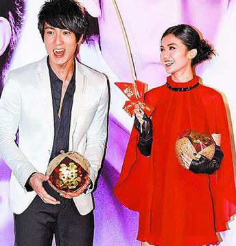 吴尊与阿Sa出席《剑蝶》台北首映会。