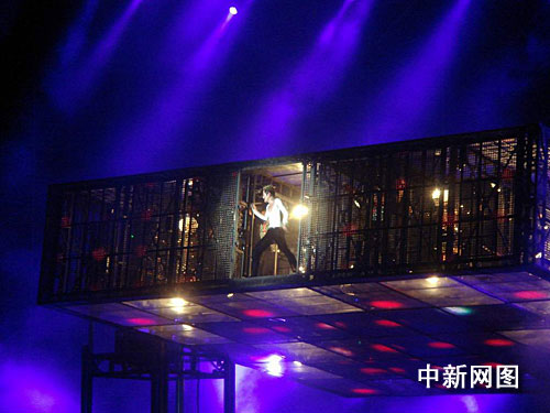 善以百变怪诞服饰出演个唱的郭富城,昨晚演唱会上每曲皆以不同演装登场,三角背心、红舞衣、纹身衣、陶瓷头盔、透视装等性感十足、热力四射,征服了现场歌迷的眼球。此外,昨晚演唱会水元素的融入,似乎让歌迷也看到了郭富城演唱风格中的刚中有柔,刚柔相济;特制的舞台上流水轻浪、水波潺潺,郭富城踏水而歌、踢水狂舞,“水花舞林”成了昨晚演唱会的一大亮点。
