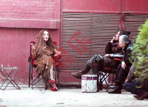片场休息的Maggie Q烟不离手,貌似疯子,却媚态十足。