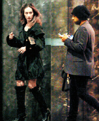 记者在外继续等候,大约6点,Maggie Q的助理出门坐车离开。晚上10点左右,助理返回,过了一会Maggie Q和一位年轻的黑人男士出现在公寓大堂,Maggie Q精心化了妆,穿着黑色超短裙和皮靴,亭亭玉立但眼神冷酷,很有点女杀手的感觉,不知是否还沉浸在角色的情境中(Maggie Q在《狼灾记》中扮演狼女)。跟在Maggie Q身后的那位黑人男士看上去大约20多岁,穿着一件深色西服和黑T恤,相貌朴实温和,边走边摆弄手机。