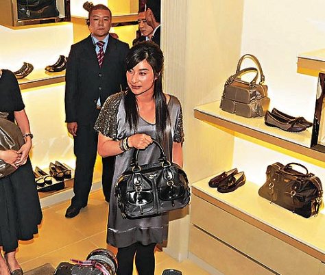 郭晶晶酒红丝绸裙装亮相 多名黑衣保镖簇拥(图)