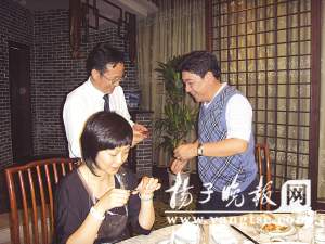 为了对在南京的联合国副秘书长进行高端访问,央视“高端主持人” 水均益前晚突然空降南京,天黑了才下飞机,在几位朋友的盛邀下,直奔南京颇负盛名的吃龙虾酒店星湖饭店,现学现考,获得“三段证”,有趣的是一同随来的爱妻、央视五套专跑台球大师杯的著名记者杨迪,吃虾技艺超过老公,得了“六段证”。