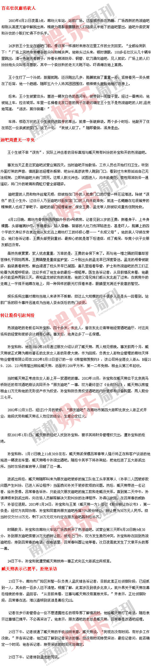 南都娱乐周刊特约五年前事件发生时惟一亲历现场采访的记者,不但重新唤醒在他电脑里冬眠了五年之久,当时差点删除掉的被毙稿件(因为一些原因,稿件完成之后被当时的报社毙掉了),还回忆出某些重要场景,还原出真相和细节,一切看起来都那么让人惊讶!