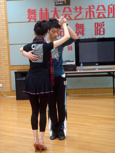 低调黑色T恤,淋漓尽致的刻画出优雅的女人味。高高扎起的发髻令身材更显挺拔。她更坚持穿上高跟鞋进行排练,性感窈窕的身材在旋转舞池中更为魅惑。