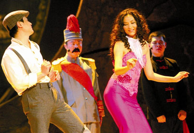 如果说瞿颖几年前出演贺岁喜剧“韭菜花”中是第一次展现自己的舞台演技,那么这次在“麻花”中的演出则是时尚与演技兼顾。瞿颖出场时一身着黑色,酷辣卷发迎风飘舞,全场为之惊艳。结果,等升降台全部升起来观众才发现,原来是有个滑稽人物趴在瞿颖脚边拿着大蒲扇使劲儿给她扇风。