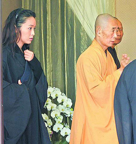 侯佩岑(左)参加父亲头七法会。