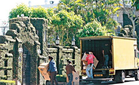工人将在罗康瑞大宅搬走的几箱物件,运回霍家位于沙宣道的大宅。
