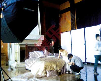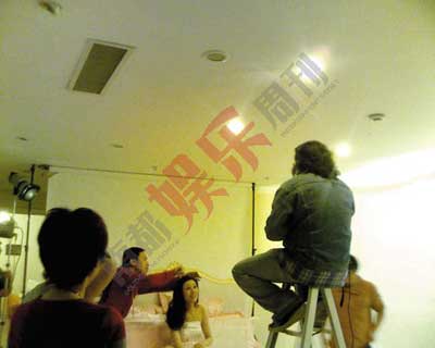 拍摄前李嘉欣在试穿高跟鞋,以保证拍摄万无一失。