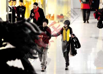 第二天凌晨5点,记者就爬起床来赶到夏雨公寓外守候。早晨7点20分左右,一对穿着厚重棉衣的男女拖着行李箱走出大门打车。记者一眼就认出他们就是夏雨和袁泉。两人装扮很有点情侣装的感觉,都戴黑色毛线帽子、穿着鹿皮旅游鞋,一副出门远游的样子。除了两个大的旅行箱外,夏雨还抱着一个长长的装着滑雪板的红袋子。夏雨和袁泉一起把行李放进出租车,然后上车朝机场方向驶去。到达机场后,夏雨先下车推来行李车放行李箱,袁泉一只手帮夏雨推车,一只手挽住夏雨的胳膊。他们进入机场大厅后先是办理登机卡,然后托运行李,最后还兑换外币。整个过程中,两人很少交流,即使说话也是低声细语,但表情轻松愉快。因为大厅里很热,夏雨脱下羽绒服,而袁泉马上帮夏雨接住背包,袁泉还几次自然地挽住了夏雨胳膊,无意间流露了情感。当所有事宜办好后,两人并肩走进登机入口,开始了他们甜蜜的北海道滑雪之旅。