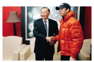 电影《非诚勿扰》昨天也在万达影城举行见面会,由此便促成了从未谋面的梅葆玖先生与冯小刚导演的初次见面,而两人的见面礼则颇有些“火药味”:冯小刚送上《非诚勿扰》的原声碟,梅先生则送给对方自己的京剧唱片。不过,两人一见面就以一个握手化解了贺岁档这两部片子的“暗战”,冯小刚还以电影《梅兰芳》中的京剧精神来为两部影片的票房大战开解:“两部电影完全不同,但都是好电影,就像京剧里除了梅派也有别的派别,‘不分流派 不分类别’。”