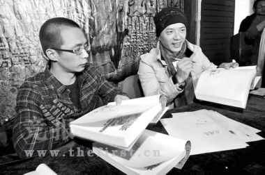 电视剧《我的团长我的团》要到明年才能与观众见面,但大家已经迫不及待地买来编剧兰晓龙的同名小说先睹为快。昨天,该书在第三极书局举行签售和交流活动,兰晓龙请来演员张国强和段奕宏来捧场,引得“士兵突击”的粉丝早早地排起长队。