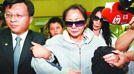 林晓培(右)去年酒驾肇事,戴墨镜的她不断向受害者道歉。