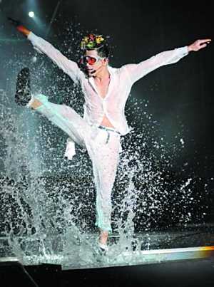 作为系列演唱会的保留项目,这次水花舞林表演环节赋予不少新的东西,首先是首次在T台上表演,更加拉近与观众的距离;其次是前晚的气温只有10℃,在如此低温的环境下“玩水”会令人更加兴奋。在缓缓的流水声中,整个舞台被注满了水,像一个巨型水池。在《唱这歌》的音乐声中,身穿白色全套透视装的郭富城现身跳起劲舞,水花一直溅射到台下,观众也很兴奋地迎水而舞,郭富城的红色防水内裤也都完全展露出来,尽显诱惑味道。而最后演唱《着迷》的时候,郭富城更用毛巾拍打舞台的水,产生更多水花,将观众的热情推向高潮。